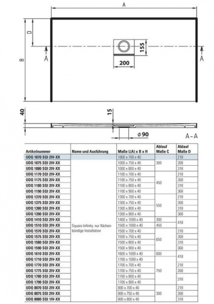 - Все душевые поддоны имеют степень противоскольжения класса C (согласно DIN51097)