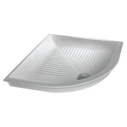Угловой керамический душевой поддон со сливным отверстием 90 мм и съемным гидрозатвором, удобный в обслуживании. Крышка выпуска – круглая хромированная. Монтируется в пол. Два борта без эмали.