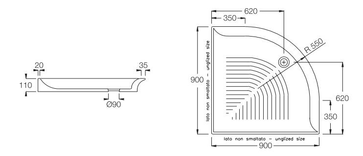 - Сливное отверстие 90 мм