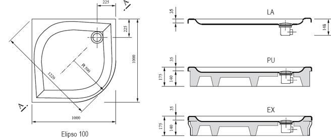 Эти поддоны устанавливаются на ножки, на пол или непосредственно в пол. Тип ЕХ подходит для облицовки кафелем.