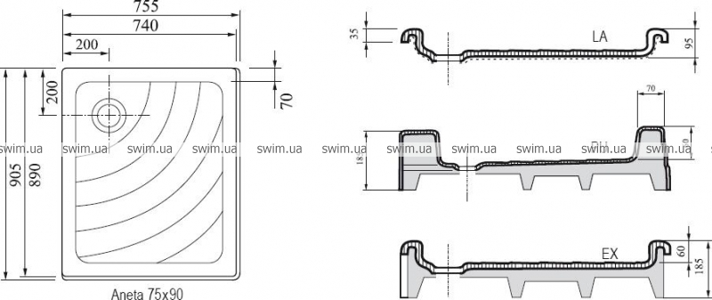 Поддон душевой Ravak Kaskada Aneta EX 75х90 Поддон душевой Ravak Kaskada Aneta EX 75х90