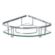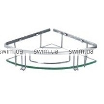 Полка из нержавеющей стали, одинарная, угловая. С 2 крючками для полотенец.