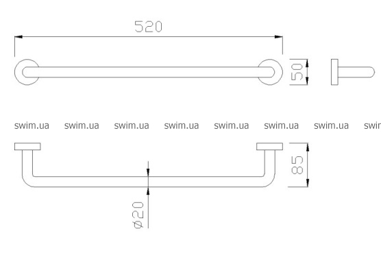 Поручень/вешалка для полотенец 520 мм BRASS из хромированной латуни серия SIENA.