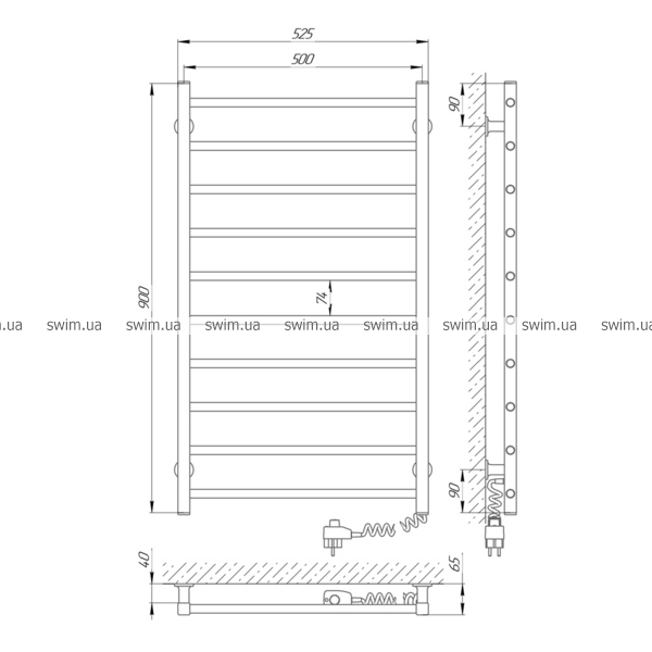 → Полотенцесушитель электрический Laris Альфа ЧФ10 73207441, 500х900 мм