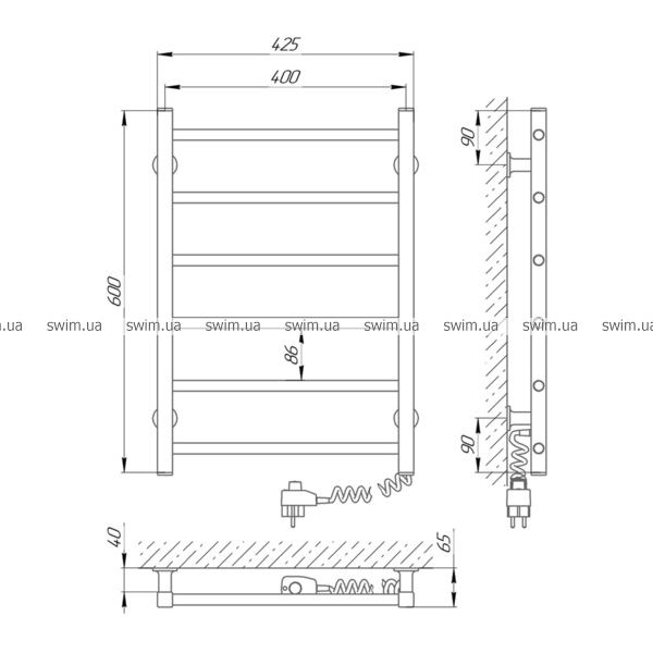 → Полотенцесушитель электрический Laris Альфа ЧФ6 73207443, 400х600 мм