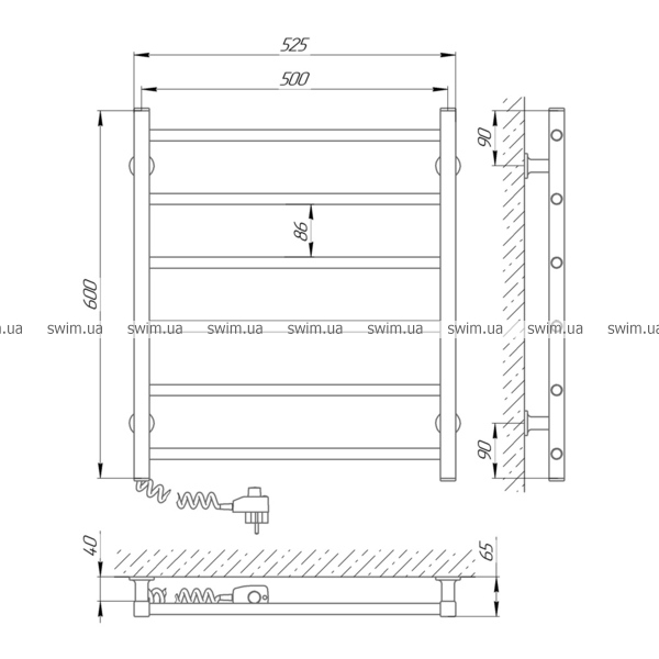 → Полотенцесушитель электрический Laris Альфа ЧФ6 73207444, 500х600 мм