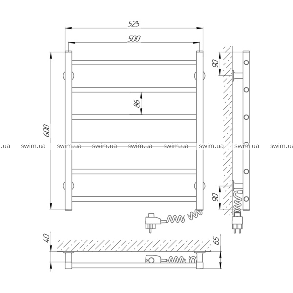 → Полотенцесушитель электрический Laris Альфа ЧФ6 73207445, 500х600 мм