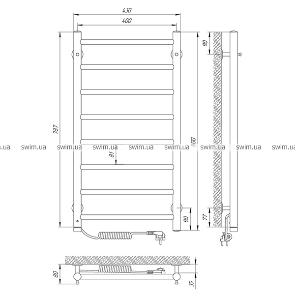 → Полотенцесушитель электрический Laris Альфа П8 73207459, 400х800 мм