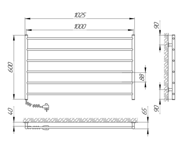 Полотенцесушитель электрический Laris Горизонт ЧФ6 75201029, 1000х600 мм