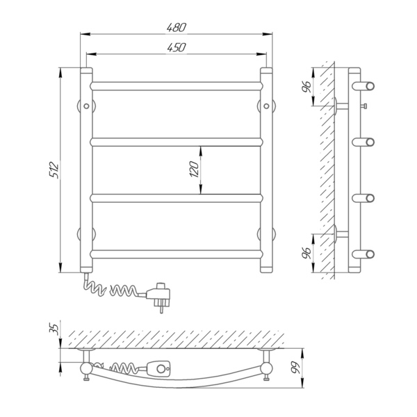Полотенцесушитель электрический Laris Класик П4 73207044bronze, 450х500 мм