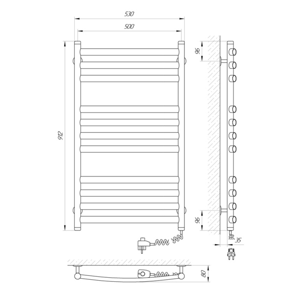 Полотенцесушитель электрический Laris Класик Премиум П11 71207609bronze, 500х900 мм