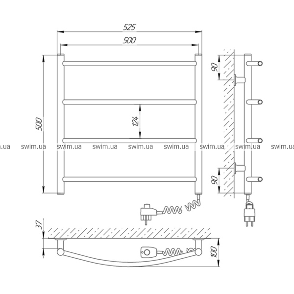 Полотенцесушитель электрический Laris Классик ЧК4 75201008, 500х500 мм