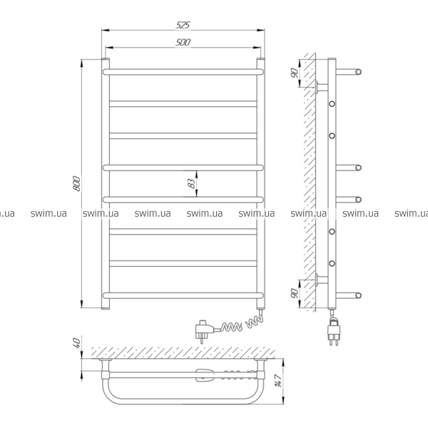 → Полотенцесушитель электрический Laris Комфорт ЧК8 75201004, 500х800 мм
