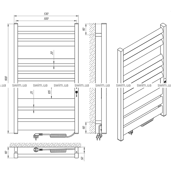 Полотенцесушитель электрический Laris Лавина ЧК10 75201088, 500х900 мм