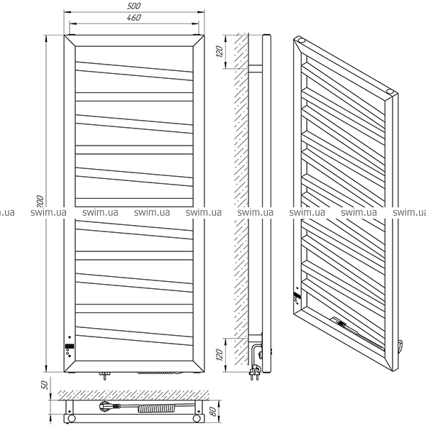 → Полотенцесушитель электрический Laris Мираж ЧКЧ12 71207715, 500х1200 мм