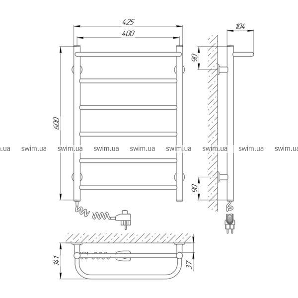 → Полотенцесушитель электрический Laris Прайм ЧК6 75201023, 400х600 мм