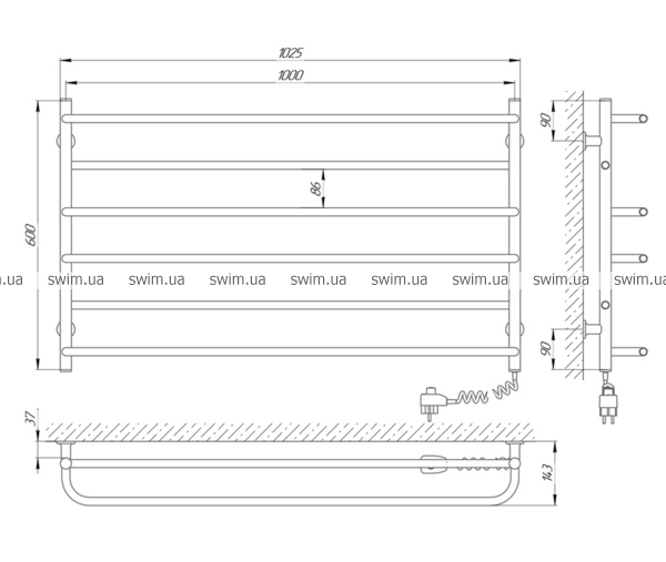 Полотенцесушитель электрический Laris Практик ЧК6 75201026, 1000х600 мм