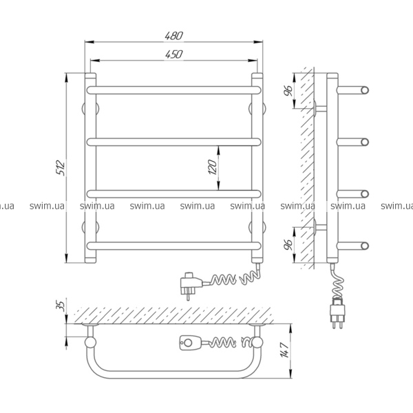 Полотенцесушитель электрический Laris Стандарт П4 73207019gold, 450х500 мм
