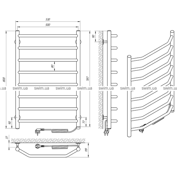 → Полотенцесушитель электрический Laris Виктория П8 73207017gold, 500х800 мм