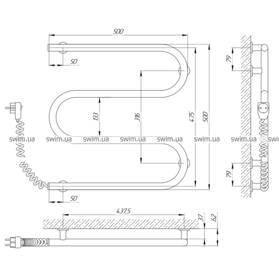 → Полотенцесушитель электрический Laris Змеевик 25 ЧК3 75201019, 500х500 мм