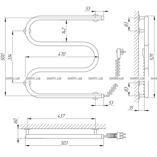 → Полотенцесушитель электрический Laris Змеевик 25 РС3 73207033, 500х500 мм