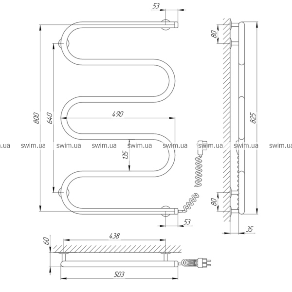 → Полотенцесушитель электрический Laris Змеевик 25 РС5 73207041, 500х800 мм