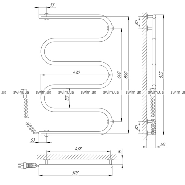 → Полотенцесушитель электрический Laris Змеевик 25 РС5 73207124, 500х800 мм