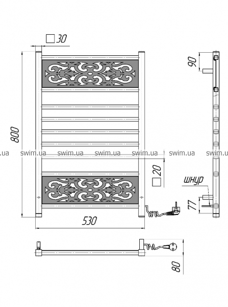 Полотенцесушитель электрический Марио Анталия-І 4820111354535 800x530 хром