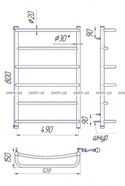 → Полотенцесушитель электрический Марио Люкс HP-І 800 4820111353736 хром
