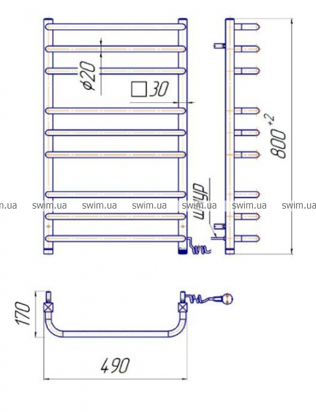 → Полотенцесушитель электрический Марио Премиум Стандарт-І 80 4820111354214EB евро бронза