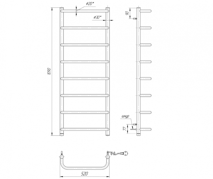 → Полотенцесушитель электрический Марио Стандарт HP-І 1090 4820111353781G золото