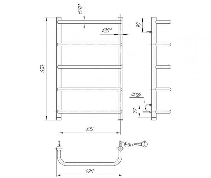 Электрический полотенцесушитель Стандарт HP-I 650x430 номинальная мощность 70W, состоит из 5 ребер. Полотенцесушитель Стандарт HP-I производственного предприятия Mario изготовлен из нержавеющей стали. Максимальная температура нагрева 60 °C. Для экономии электроэнергии в конструкции предусмотрен регулятор температуры. Степень пыле-электрозащиты IP44.