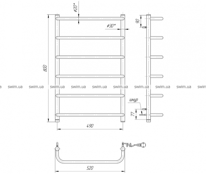 → Полотенцесушитель электрический Марио Стандарт HP-І 800 4820111353774B бронза
