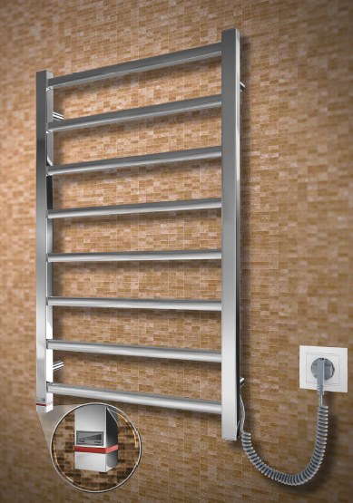 Электрический полотенцесушитель Токио -I 800x500 номинальная мощность 120W, состоит из 8 ребер. Полотенцесушитель Токио -I производсветнного предприятия Mario изготовлен из нержавеющей стали АІSI 304. Максимальная температура нагрева 60 °C. Для экономии электроенергии в конструкции предусмотрен регулятор температуры. Степерь пыле-електрозащиты IP44.