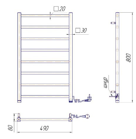 Электрический полотенцесушитель Токио -I 800x500 номинальная мощность 120W, состоит из 8 ребер. Полотенцесушитель Токио -I производсветнного предприятия Mario изготовлен из нержавеющей стали АІSI 304. Максимальная температура нагрева 60 °C. Для экономии электроенергии в конструкции предусмотрен регулятор температуры. Степерь пыле-електрозащиты IP44.