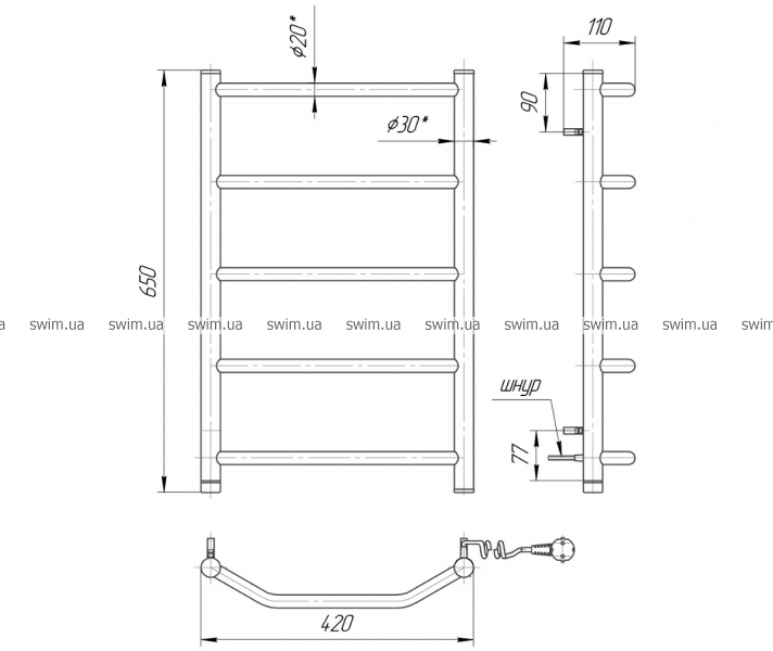 → Полотенцесушитель электрический Марио Трапеция HP-І 660 4820111353804C медь