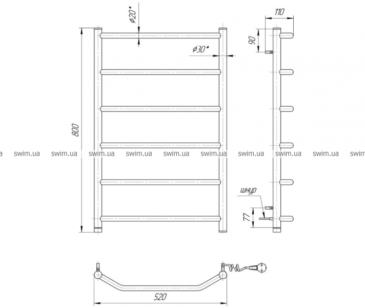 Электрический полотенцесушитель Трапеция HP-I 810x520 номинальная мощность 90W, состоит из 6 ребер. Полотенцесушитель Трапеция HP-I производственного предприятия Mario изготовлен из нержавеющей стали. Максимальная температура нагрева 60 °C. Для экономии электроэнергии в конструкции предусмотрен регулятор температуры. Степень пыле-электрозащиты IP44.