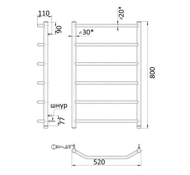 → Полотенцесушитель электрический Марио Трапеция HP-І 810 4820111354009BP черный жемчуг