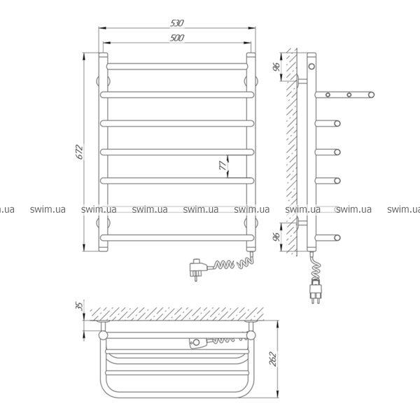 Полотенцесушитель электрический с полкой Laris Стандарт П7 73207178, 500х660 мм