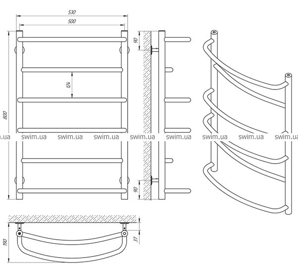 → Полотенцесушитель Laris Еврофлеш П6 74100016bronze, 500х800 мм