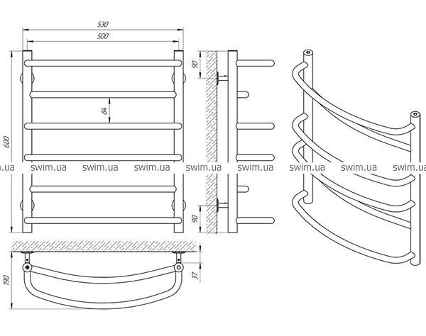 → Полотенцесушитель Laris Евромикс П6 71207523bronze, 500х600 мм