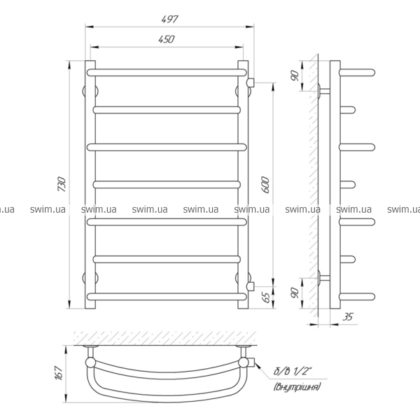 → Полотенцесушитель Laris Евромикс П7 71207366bronze, 450х700 мм