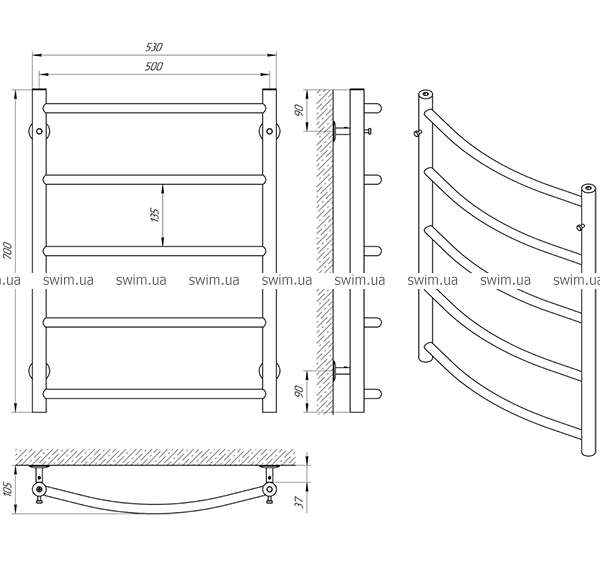 Полотенцесушитель Laris Флеш П5 74100008, 500х700 мм
