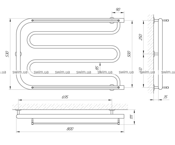 Полотенцесушитель Laris Фокстрот П 71207451gold, 800х500 мм