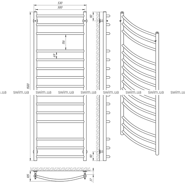 → Полотенцесушитель Laris Класик П15 71207383bronze, 500х1500 мм