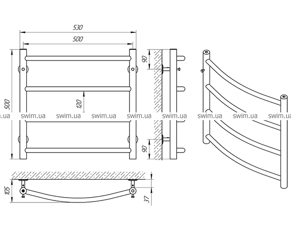Полотенцесушитель Laris Класик П4 71207579bronze, 500х500 мм