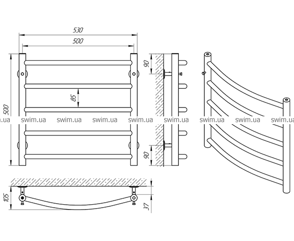 Полотенцесушитель Laris Класик П5 71207580, 500х500 мм