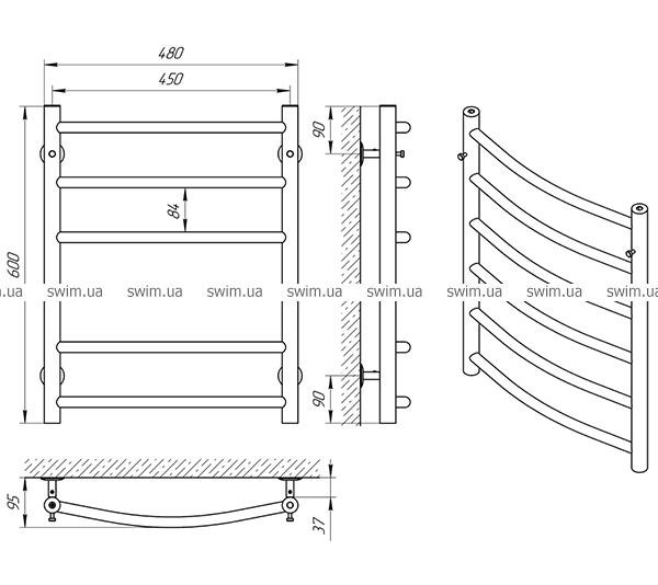Полотенцесушитель Laris Класик П6 71207028bronze, 450х600 мм
