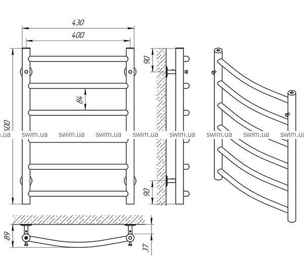 Полотенцесушитель Laris Класик П6 71207516gold, 400х600 мм
