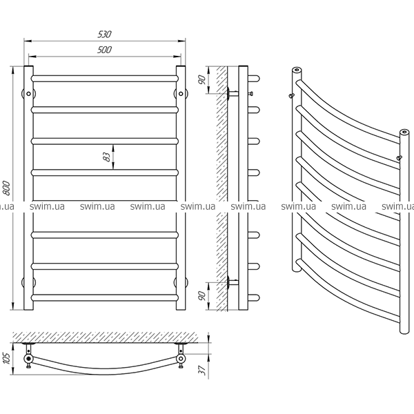 - Полотенцесушитель - 1 шт
